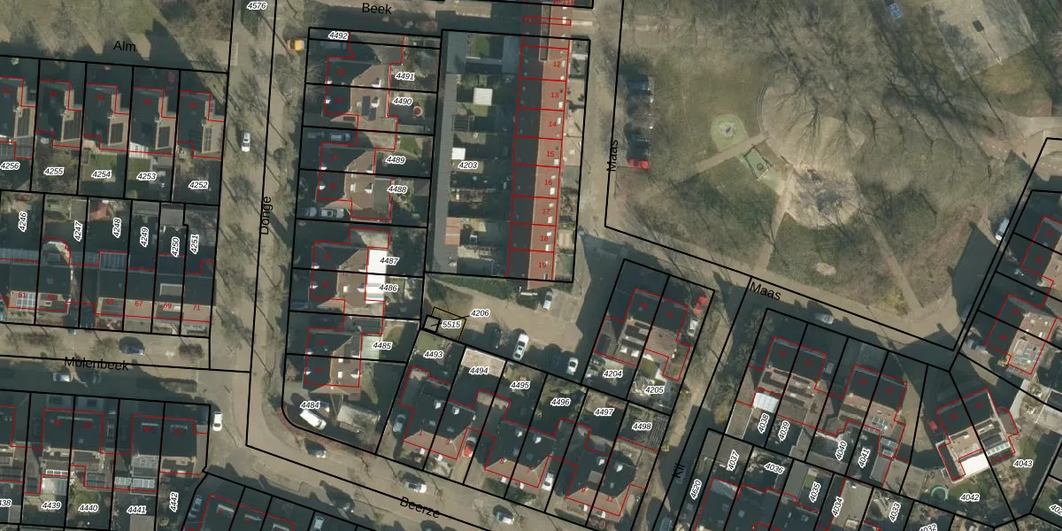Maas 19 is gelegen op kadastraal perceel LOO00H4203. Deze kadastrale aanduiding is uniek en wordt gebruikt door het Kadaster om eigendomsrechten en andere zakelijke rechten vast te leggen. Het perceel maakt onderdeel uit van de kadastrale gemeente Loon op Zand.
