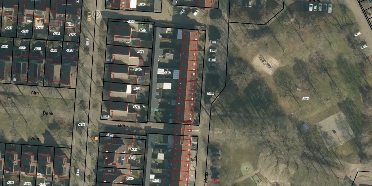 Het perceel waarop Maas 7 staat heeft een oppervlakte van 1431 m². Dit is een zeer groot perceel. De perceeloppervlakte wordt geregistreerd door het Kadaster. Gedetailleerde informatie over de maten van dit perceel kunt u vinden in het rapport Kadastrale kaart met maatvoering van Maas 7.
