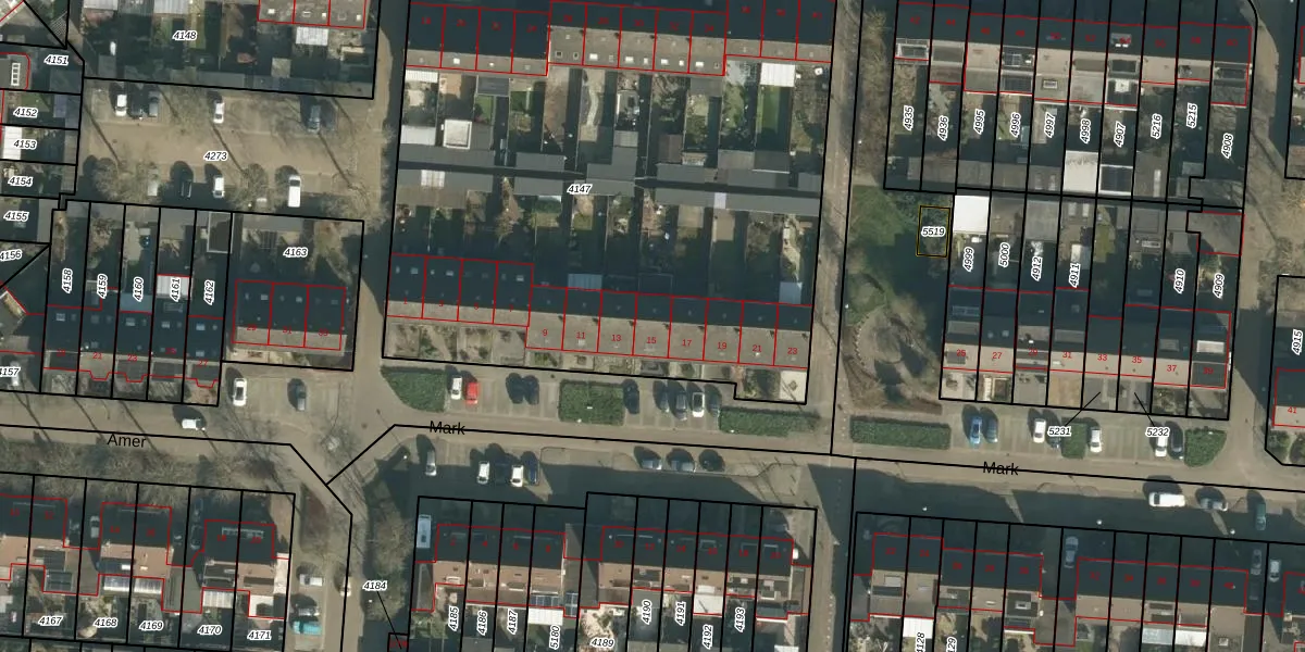 Het perceel waarop Mark 15 staat heeft een oppervlakte van 4058 m². Dit is een zeer groot perceel. De perceeloppervlakte wordt geregistreerd door het Kadaster. Gedetailleerde informatie over de maten van dit perceel kunt u vinden in het rapport Kadastrale kaart met maatvoering van Mark 15.