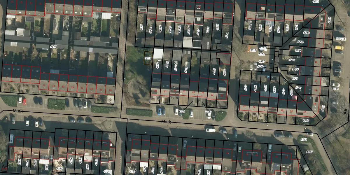 Het perceel waarop Mark 29 staat heeft een oppervlakte van 176 m². Dit is een middelgroot perceel. De perceeloppervlakte wordt geregistreerd door het Kadaster. Gedetailleerde informatie over de maten van dit perceel kunt u vinden in het rapport Kadastrale kaart met maatvoering van Mark 29.
