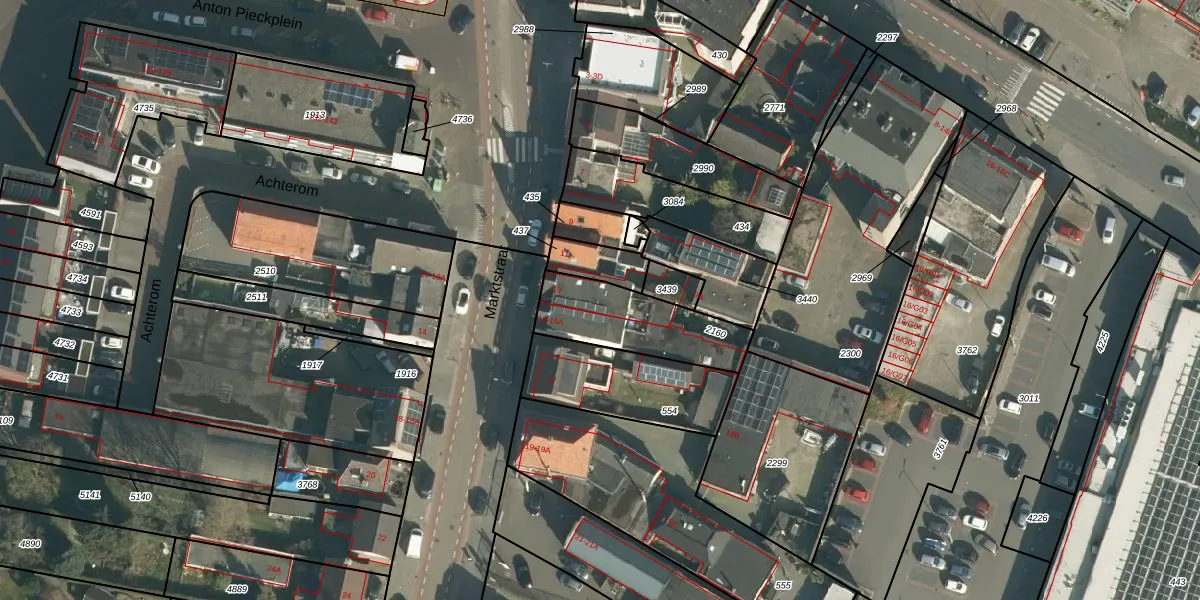 Het perceel waarop Marktstraat 13 staat heeft een oppervlakte van 345 m². Dit is een groot perceel. De perceeloppervlakte wordt geregistreerd door het Kadaster. Gedetailleerde informatie over de maten van dit perceel kunt u vinden in het rapport Kadastrale kaart met maatvoering van Marktstraat 13.