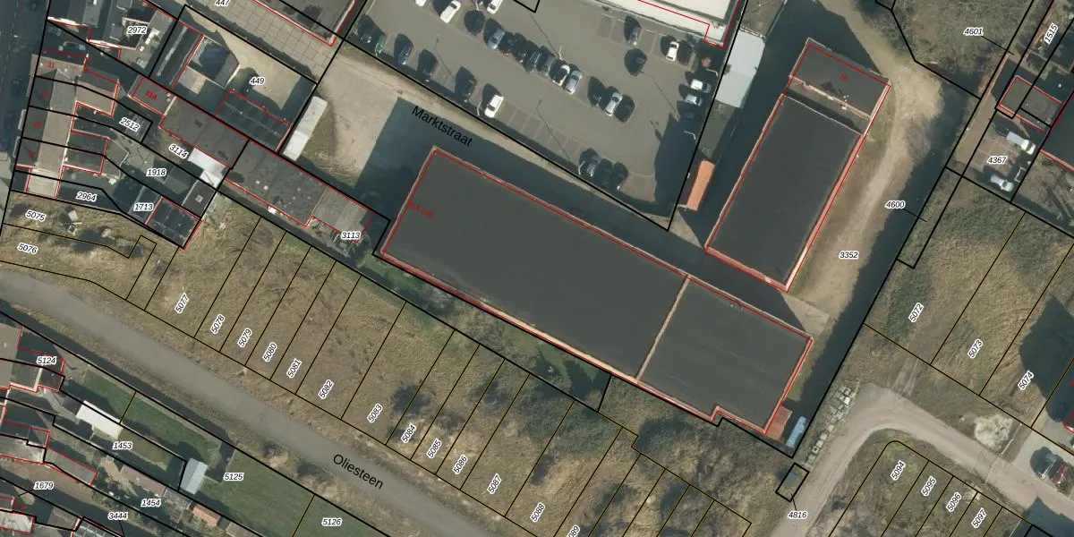 Het perceel waarop Marktstraat 25-B staat heeft een oppervlakte van 5630 m². Dit is een zeer groot perceel. De perceeloppervlakte wordt geregistreerd door het Kadaster. Gedetailleerde informatie over de maten van dit perceel kunt u vinden in het rapport Kadastrale kaart met maatvoering van Marktstraat 25-B.