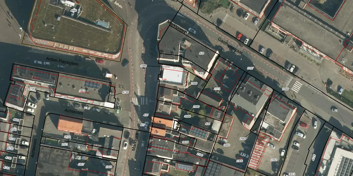 Het perceel waarop Marktstraat 3-D staat heeft een oppervlakte van 325 m². Dit is een groot perceel. De perceeloppervlakte wordt geregistreerd door het Kadaster. Gedetailleerde informatie over de maten van dit perceel kunt u vinden in het rapport Kadastrale kaart met maatvoering van Marktstraat 3-D.