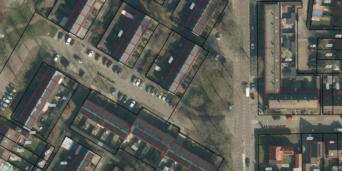 Het perceel waarop Meierijlaan 2 staat heeft een oppervlakte van 773 m². Dit is een groot perceel. De perceeloppervlakte wordt geregistreerd door het Kadaster. Gedetailleerde informatie over de maten van dit perceel kunt u vinden in het rapport Kadastrale kaart met maatvoering van Meierijlaan 2.