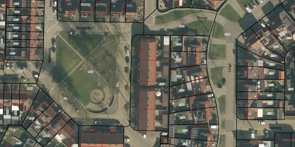 Het perceel waarop Merwede 7 staat heeft een oppervlakte van 1714 m². Dit is een zeer groot perceel. De perceeloppervlakte wordt geregistreerd door het Kadaster. Gedetailleerde informatie over de maten van dit perceel kunt u vinden in het rapport Kadastrale kaart met maatvoering van Merwede 7.