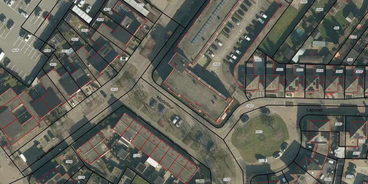 Het perceel waarop Modelleur 49 staat heeft een oppervlakte van 3245 m². Dit is een zeer groot perceel. De perceeloppervlakte wordt geregistreerd door het Kadaster. Gedetailleerde informatie over de maten van dit perceel kunt u vinden in het rapport Kadastrale kaart met maatvoering van Modelleur 49.