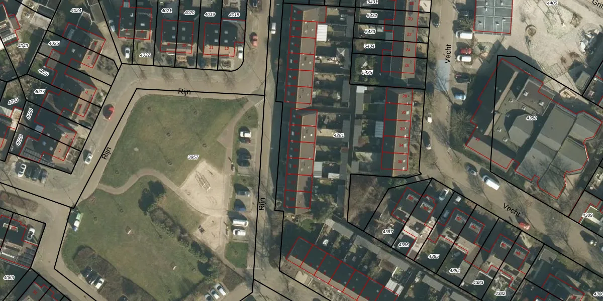 Het perceel waarop Rijn 15 staat heeft een oppervlakte van 4468 m². Dit is een zeer groot perceel. De perceeloppervlakte wordt geregistreerd door het Kadaster. Gedetailleerde informatie over de maten van dit perceel kunt u vinden in het rapport Kadastrale kaart met maatvoering van Rijn 15.