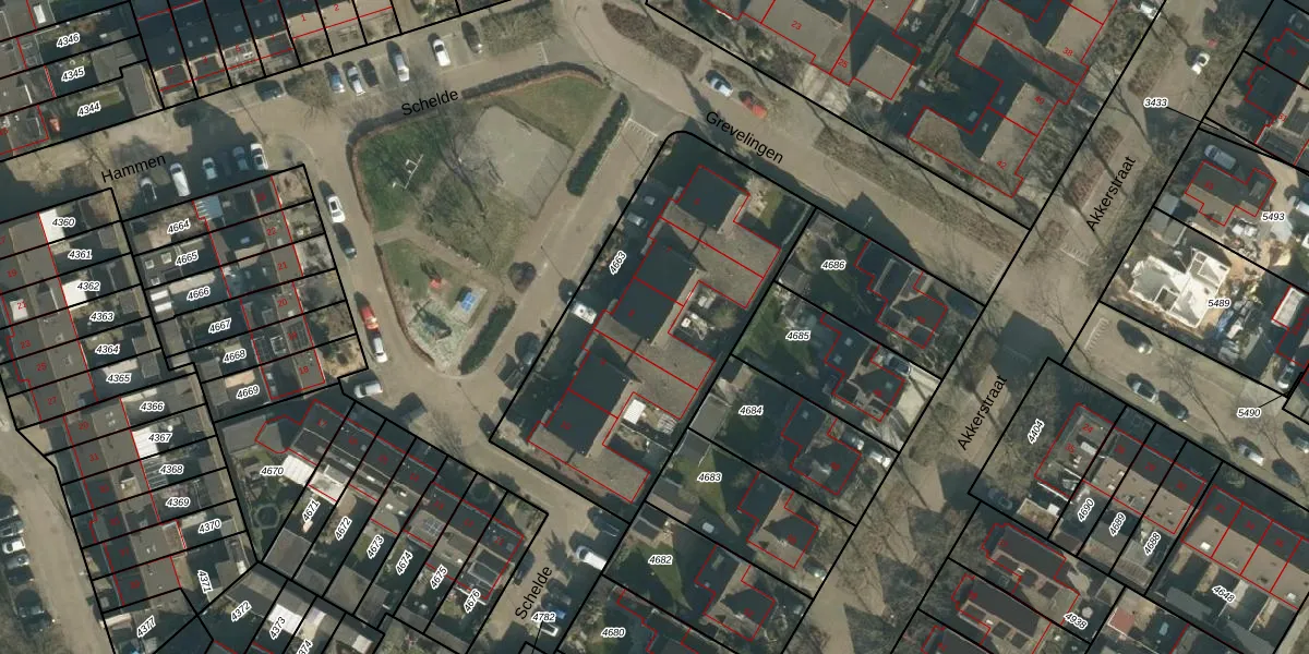 Het perceel waarop Schelde 8 staat heeft een oppervlakte van 1405 m². Dit is een zeer groot perceel. De perceeloppervlakte wordt geregistreerd door het Kadaster. Gedetailleerde informatie over de maten van dit perceel kunt u vinden in het rapport Kadastrale kaart met maatvoering van Schelde 8.