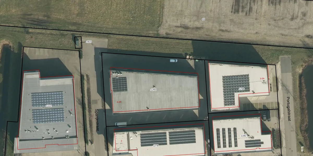 Het perceel waarop Spanjestraat 18 staat heeft een oppervlakte van 2823 m². Dit is een zeer groot perceel. De perceeloppervlakte wordt geregistreerd door het Kadaster. Gedetailleerde informatie over de maten van dit perceel kunt u vinden in het rapport Kadastrale kaart met maatvoering van Spanjestraat 18.