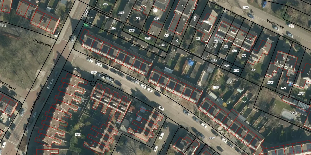 Het perceel waarop Turfvaert 17 staat heeft een oppervlakte van 4785 m². Dit is een zeer groot perceel. De perceeloppervlakte wordt geregistreerd door het Kadaster. Gedetailleerde informatie over de maten van dit perceel kunt u vinden in het rapport Kadastrale kaart met maatvoering van Turfvaert 17.