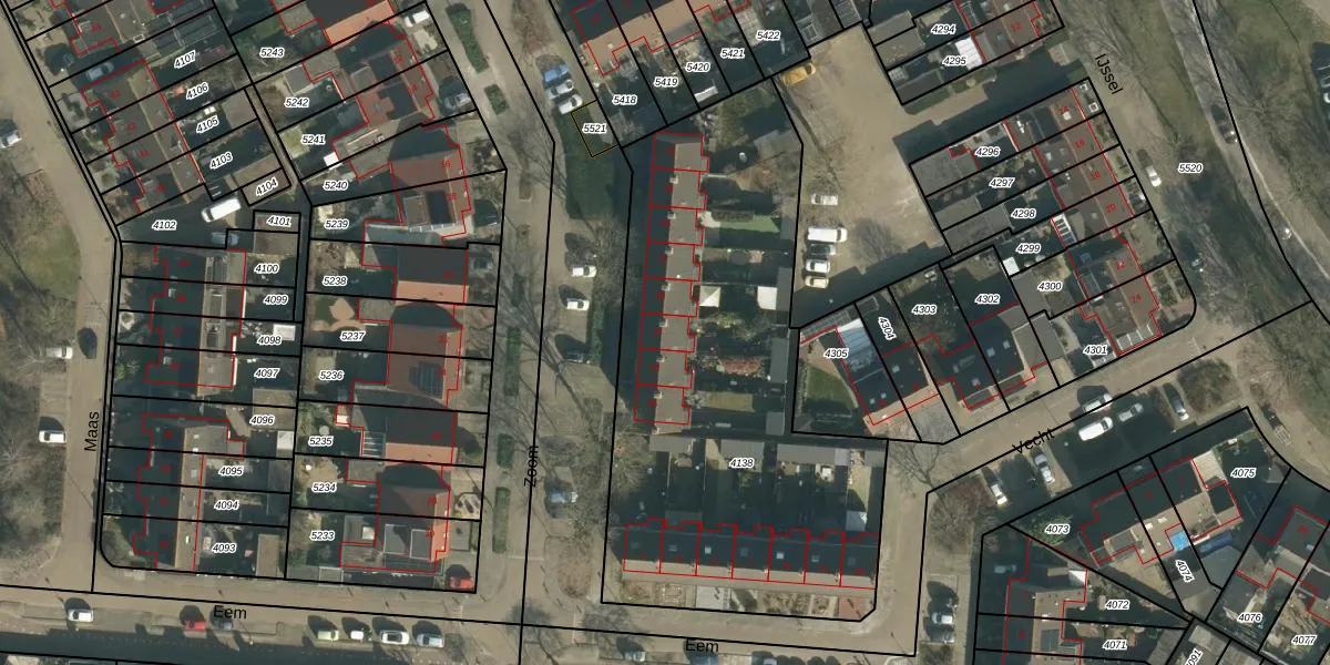 Het perceel waarop Zoom 31 staat heeft een oppervlakte van 2362 m². Dit is een zeer groot perceel. De perceeloppervlakte wordt geregistreerd door het Kadaster. Gedetailleerde informatie over de maten van dit perceel kunt u vinden in het rapport Kadastrale kaart met maatvoering van Zoom 31.