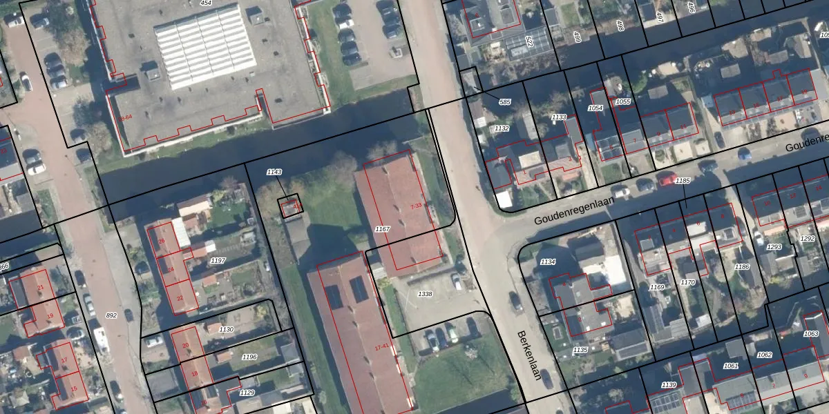 Het perceel waarop Berkenlaan 13 staat heeft een oppervlakte van 2855 m². Dit is een zeer groot perceel. De perceeloppervlakte wordt geregistreerd door het Kadaster. Gedetailleerde informatie over de maten van dit perceel kunt u vinden in het rapport Kadastrale kaart met maatvoering van Berkenlaan 13.