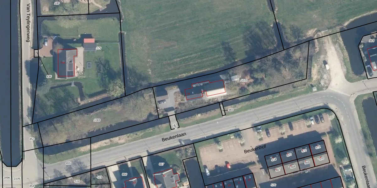 Beukenlaan 45 is gelegen op kadastraal perceel KMR00L1070. Deze kadastrale aanduiding is uniek en wordt gebruikt door het Kadaster om eigendomsrechten en andere zakelijke rechten vast te leggen. Het perceel maakt onderdeel uit van de kadastrale gemeente Kamerik.