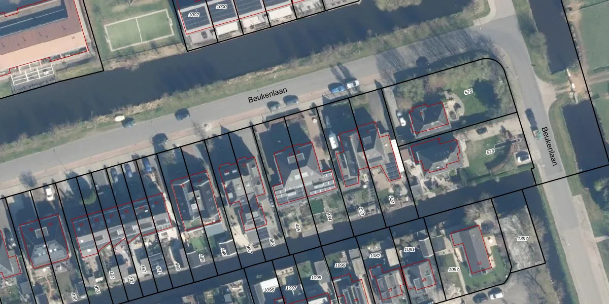 Het perceel waarop Beukenlaan 9 staat heeft een oppervlakte van 499 m². Dit is een groot perceel. De perceeloppervlakte wordt geregistreerd door het Kadaster. Gedetailleerde informatie over de maten van dit perceel kunt u vinden in het rapport Kadastrale kaart met maatvoering van Beukenlaan 9.