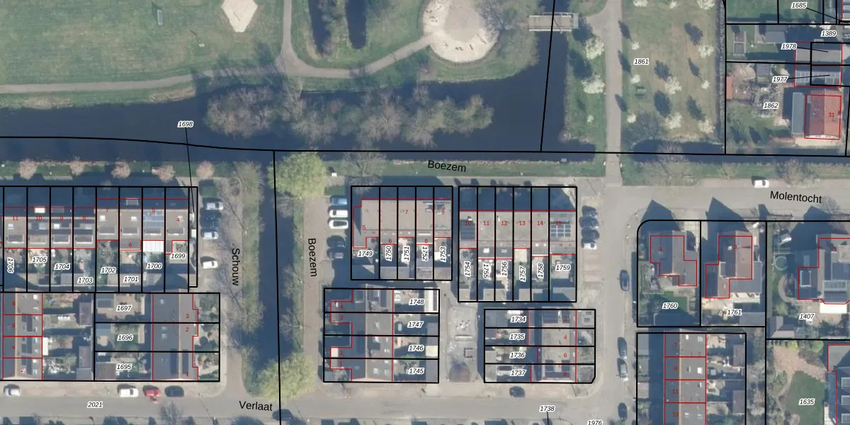 Het perceel waarop Boezem 8 staat heeft een oppervlakte van 94 m². Dit is een klein perceel. De perceeloppervlakte wordt geregistreerd door het Kadaster. Gedetailleerde informatie over de maten van dit perceel kunt u vinden in het rapport Kadastrale kaart met maatvoering van Boezem 8.