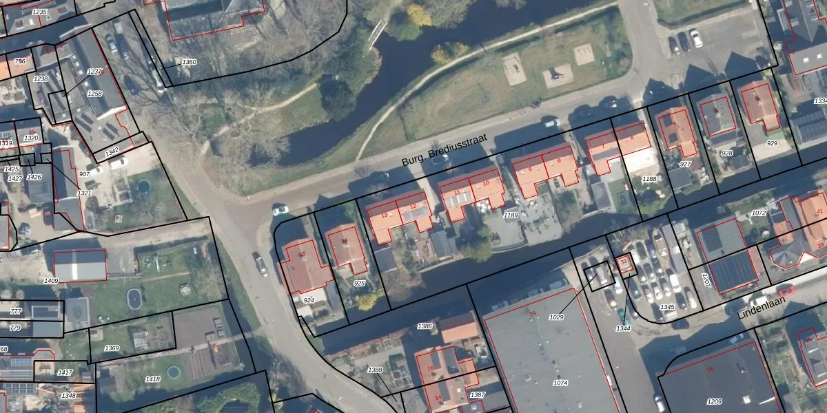 Het perceel waarop Burg. Brediusstraat 12 staat heeft een oppervlakte van 1781 m². Dit is een zeer groot perceel. De perceeloppervlakte wordt geregistreerd door het Kadaster. Gedetailleerde informatie over de maten van dit perceel kunt u vinden in het rapport Kadastrale kaart met maatvoering van Burg. Brediusstraat 12.