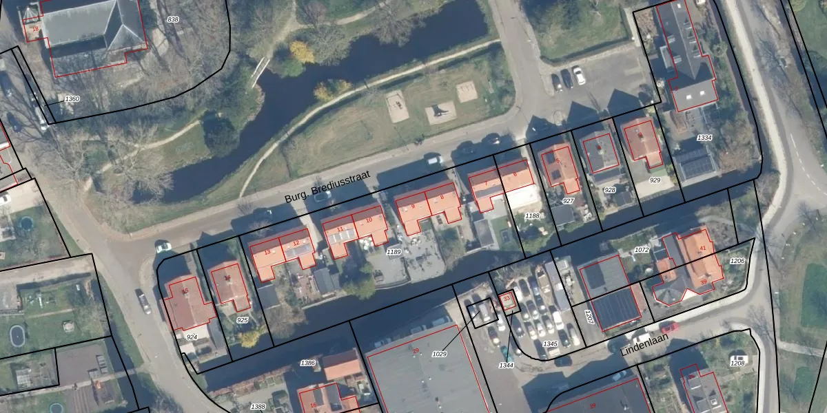 Het perceel waarop Burg. Brediusstraat 9 staat heeft een oppervlakte van 1781 m². Dit is een zeer groot perceel. De perceeloppervlakte wordt geregistreerd door het Kadaster. Gedetailleerde informatie over de maten van dit perceel kunt u vinden in het rapport Kadastrale kaart met maatvoering van Burg. Brediusstraat 9.