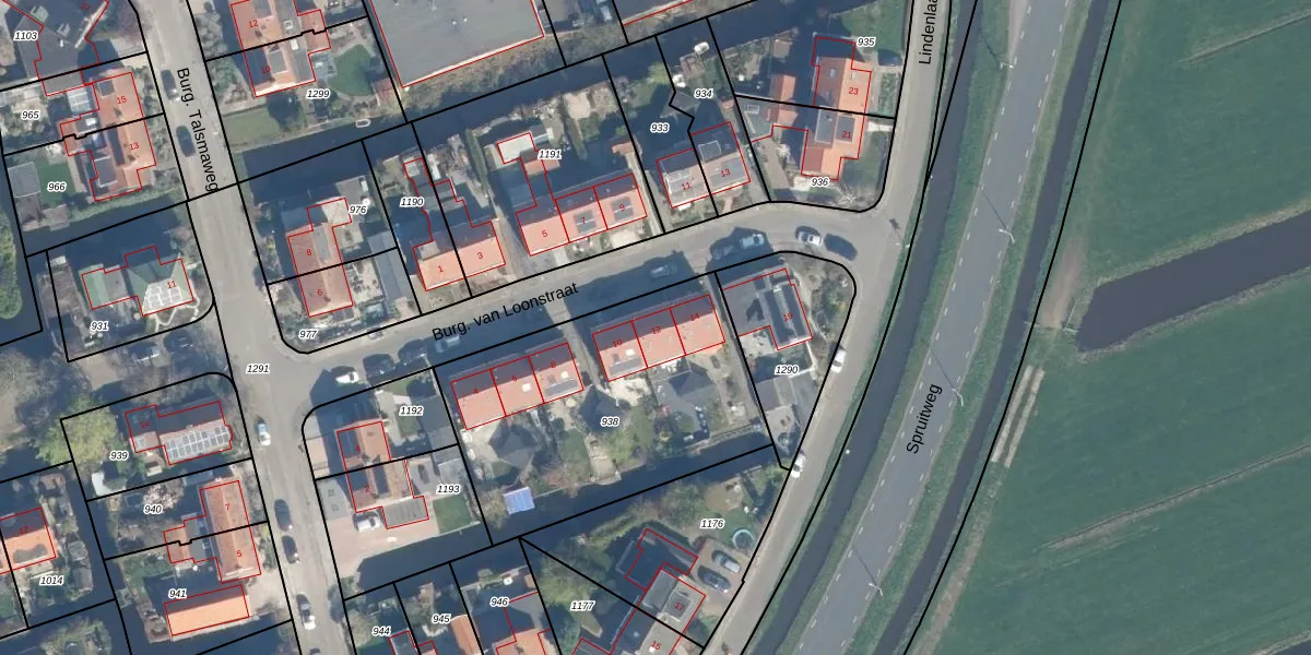 Het perceel waarop Burg. van Loonstraat 12 staat heeft een oppervlakte van 1292 m². Dit is een zeer groot perceel. De perceeloppervlakte wordt geregistreerd door het Kadaster. Gedetailleerde informatie over de maten van dit perceel kunt u vinden in het rapport Kadastrale kaart met maatvoering van Burg. van Loonstraat 12.
