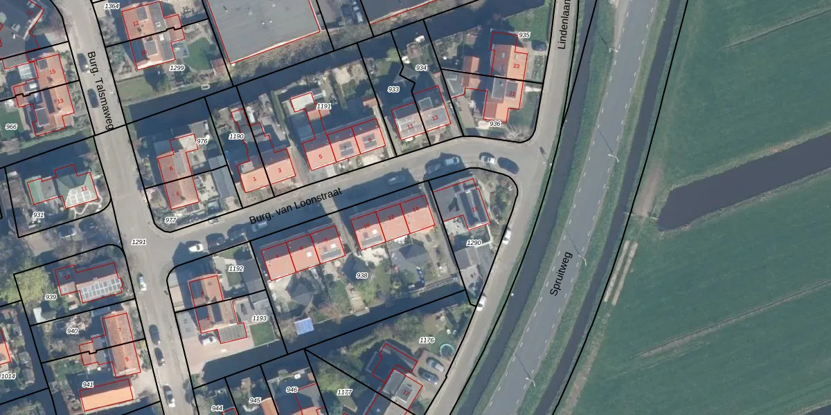 Het perceel waarop Burg. van Loonstraat 14 staat heeft een oppervlakte van 1292 m². Dit is een zeer groot perceel. De perceeloppervlakte wordt geregistreerd door het Kadaster. Gedetailleerde informatie over de maten van dit perceel kunt u vinden in het rapport Kadastrale kaart met maatvoering van Burg. van Loonstraat 14.