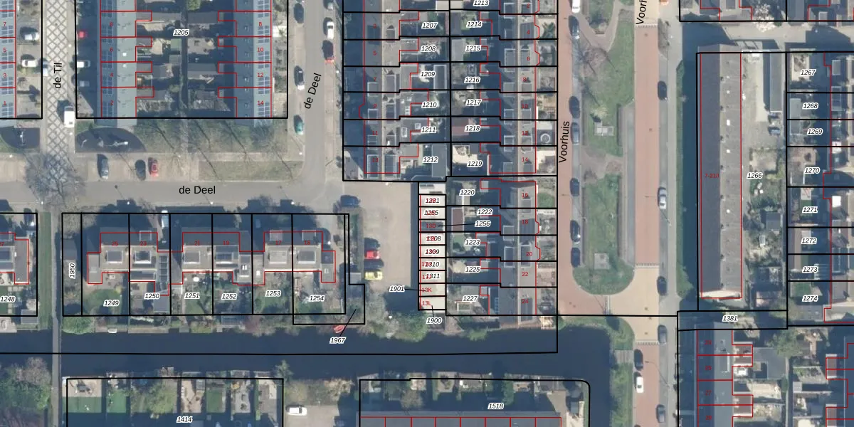 Gebruik de zoekbalk of klik op een perceel voor informatie over de adressen binnen dit perceel.