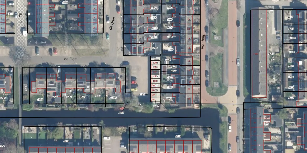 Gebruik de zoekbalk of klik op een perceel voor informatie over de adressen binnen dit perceel.