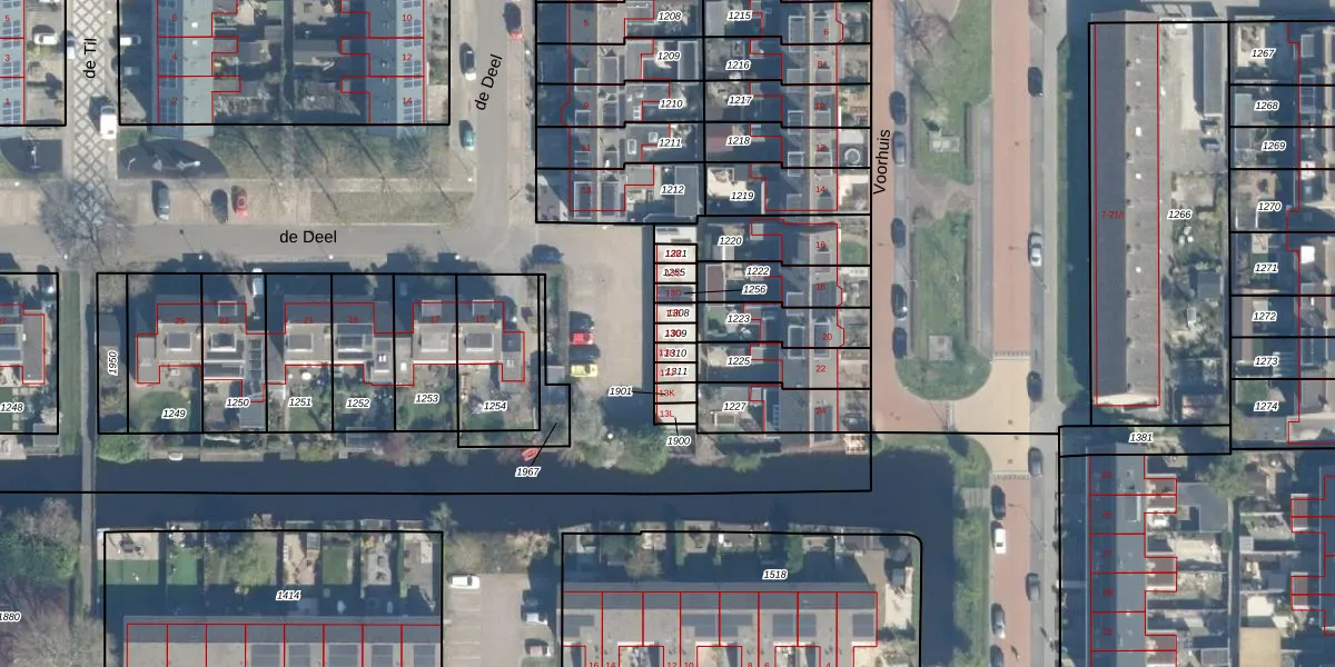Het perceel waarop de Deel 13-G staat heeft een oppervlakte van 19 m². Dit is een klein perceel. De perceeloppervlakte wordt geregistreerd door het Kadaster. Gedetailleerde informatie over de maten van dit perceel kunt u vinden in het rapport Kadastrale kaart met maatvoering van de Deel 13-G.