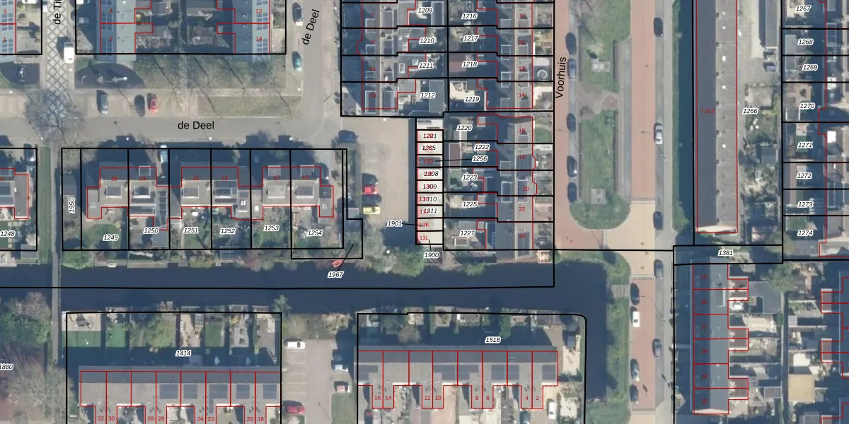 Het perceel waarop de Deel 13-J staat heeft een oppervlakte van 19 m². Dit is een klein perceel. De perceeloppervlakte wordt geregistreerd door het Kadaster. Gedetailleerde informatie over de maten van dit perceel kunt u vinden in het rapport Kadastrale kaart met maatvoering van de Deel 13-J.