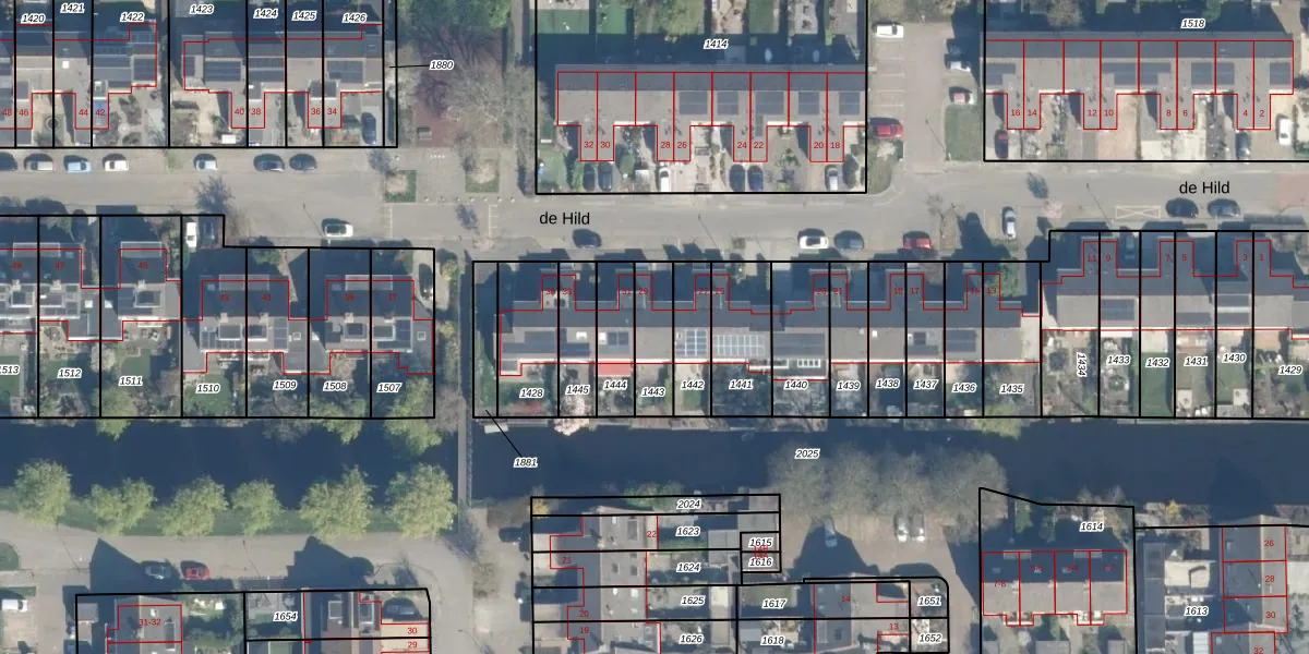 Gebruik de zoekbalk of klik op een perceel voor informatie over de adressen binnen dit perceel.