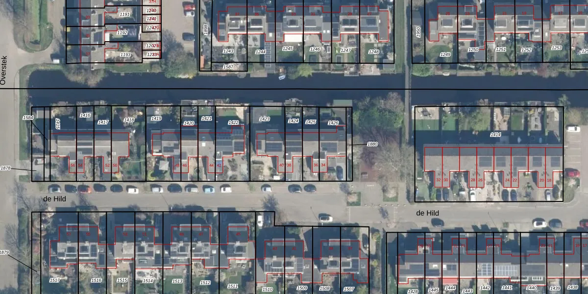 Gebruik de zoekbalk of klik op een perceel voor informatie over de adressen binnen dit perceel.