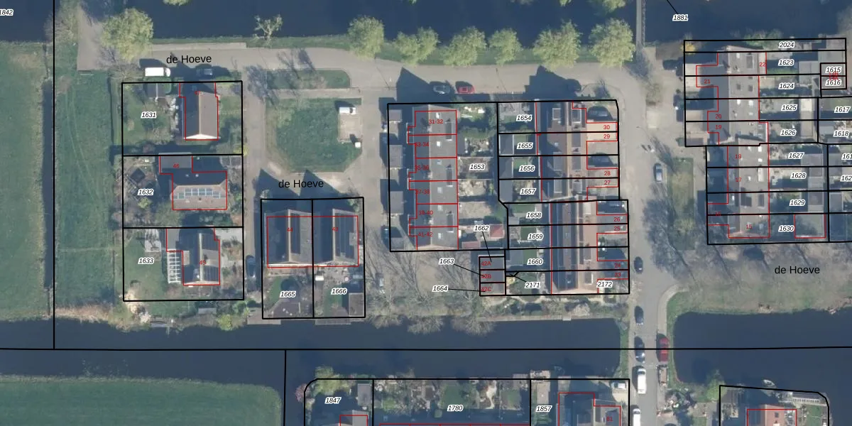 Het perceel waarop de Hoeve 39 staat heeft een oppervlakte van 910 m². Dit is een groot perceel. De perceeloppervlakte wordt geregistreerd door het Kadaster. Gedetailleerde informatie over de maten van dit perceel kunt u vinden in het rapport Kadastrale kaart met maatvoering van de Hoeve 39.