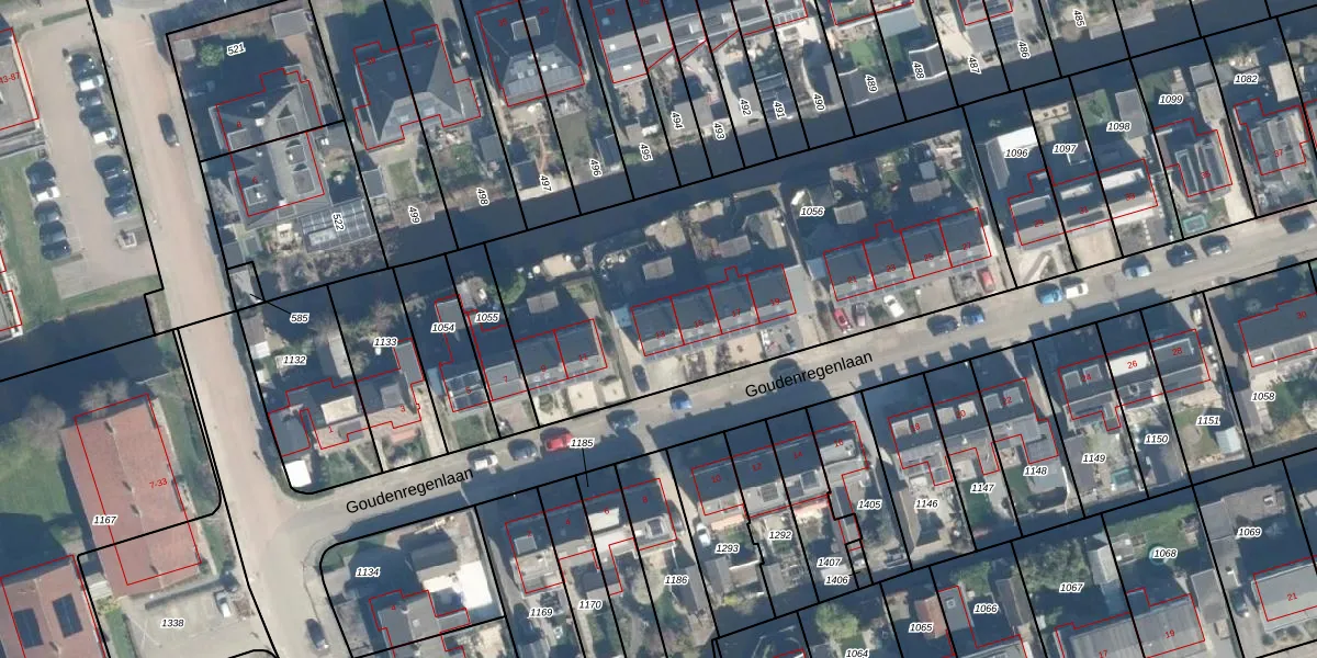 Het perceel waarop Goudenregenlaan 13 staat heeft een oppervlakte van 2120 m². Dit is een zeer groot perceel. De perceeloppervlakte wordt geregistreerd door het Kadaster. Gedetailleerde informatie over de maten van dit perceel kunt u vinden in het rapport Kadastrale kaart met maatvoering van Goudenregenlaan 13.