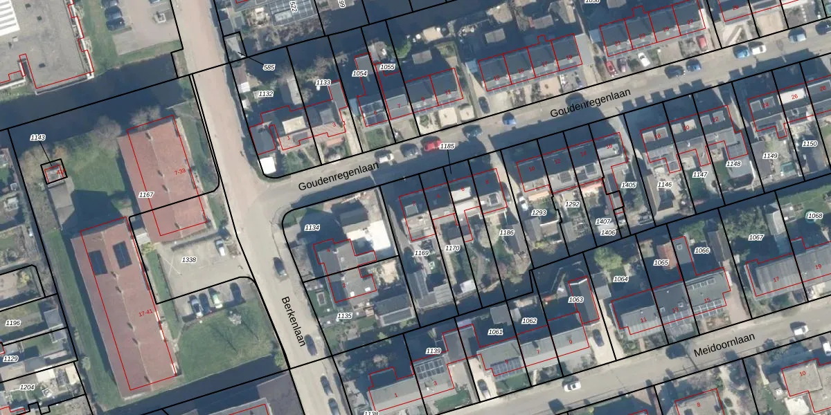 Gebruik de zoekbalk of klik op een perceel voor informatie over de adressen binnen dit perceel.
