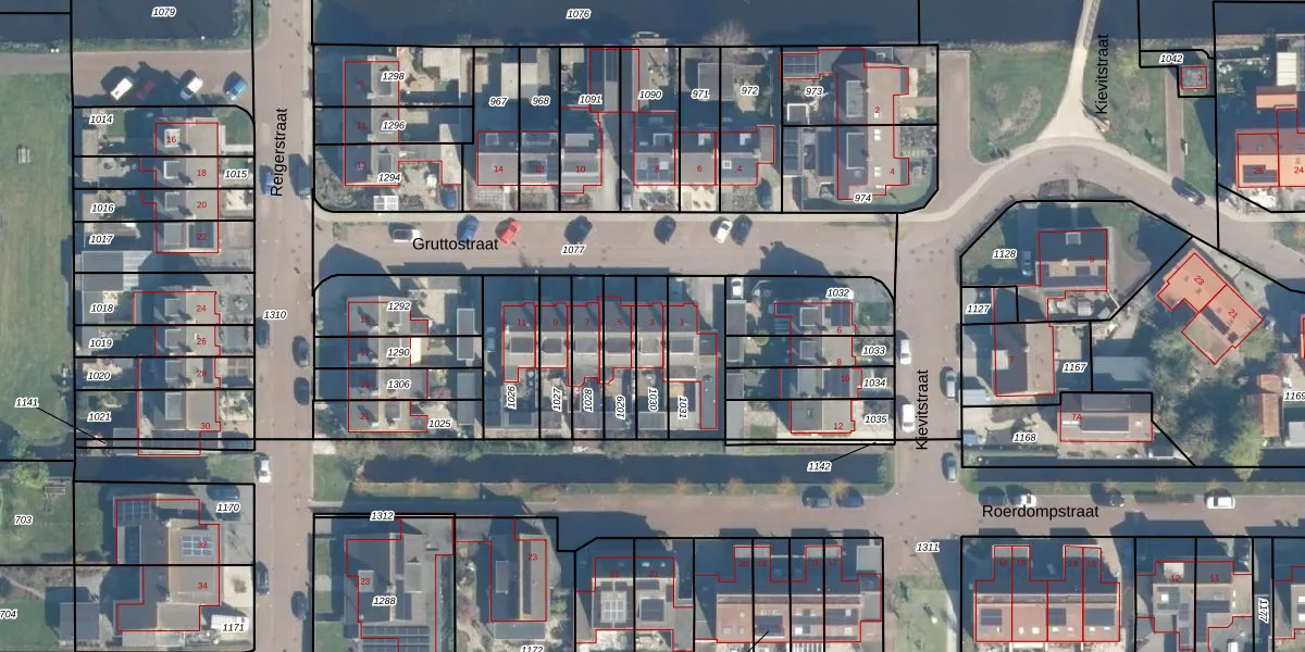 Gruttostraat 3 is gelegen op kadastraal perceel KMR00E1030. Deze kadastrale aanduiding is uniek en wordt gebruikt door het Kadaster om eigendomsrechten en andere zakelijke rechten vast te leggen. Het perceel maakt onderdeel uit van de kadastrale gemeente Kamerik.