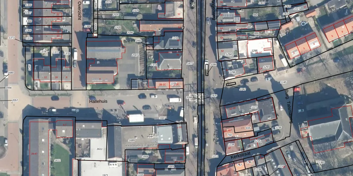 Het perceel waarop Hallehuis 2 staat heeft een oppervlakte van 173 m². Dit is een middelgroot perceel. De perceeloppervlakte wordt geregistreerd door het Kadaster. Gedetailleerde informatie over de maten van dit perceel kunt u vinden in het rapport Kadastrale kaart met maatvoering van Hallehuis 2.