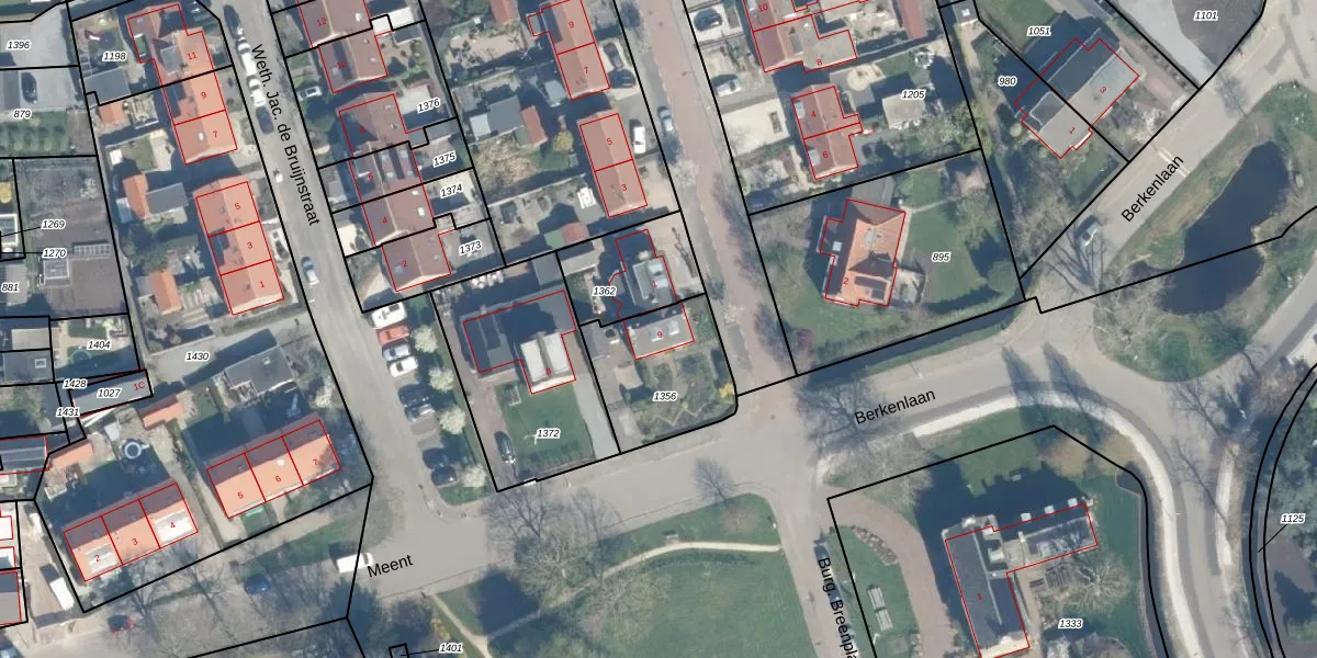 Het perceel waarop Meent 9 staat heeft een oppervlakte van 380 m². Dit is een groot perceel. De perceeloppervlakte wordt geregistreerd door het Kadaster. Gedetailleerde informatie over de maten van dit perceel kunt u vinden in het rapport Kadastrale kaart met maatvoering van Meent 9.