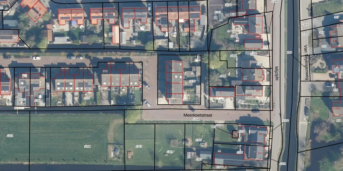 Het perceel waarop Meerkoetstraat 6 staat heeft een oppervlakte van 730 m². Dit is een groot perceel. De perceeloppervlakte wordt geregistreerd door het Kadaster. Gedetailleerde informatie over de maten van dit perceel kunt u vinden in het rapport Kadastrale kaart met maatvoering van Meerkoetstraat 6.