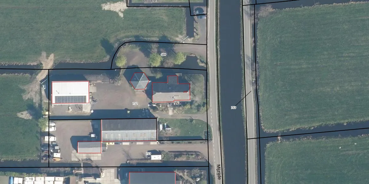 Het perceel waarop Mijzijde 155 staat heeft een oppervlakte van 2660 m². Dit is een zeer groot perceel. De perceeloppervlakte wordt geregistreerd door het Kadaster. Gedetailleerde informatie over de maten van dit perceel kunt u vinden in het rapport Kadastrale kaart met maatvoering van Mijzijde 155.