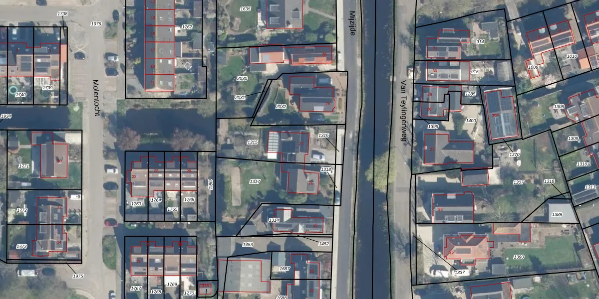 Het perceel waarop Mijzijde 27 staat heeft een oppervlakte van 525 m². Dit is een groot perceel. De perceeloppervlakte wordt geregistreerd door het Kadaster. Gedetailleerde informatie over de maten van dit perceel kunt u vinden in het rapport Kadastrale kaart met maatvoering van Mijzijde 27.