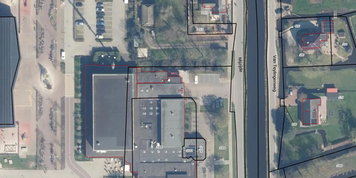 Het perceel waarop Mijzijde 80 staat heeft een oppervlakte van 3005 m². Dit is een zeer groot perceel. De perceeloppervlakte wordt geregistreerd door het Kadaster. Gedetailleerde informatie over de maten van dit perceel kunt u vinden in het rapport Kadastrale kaart met maatvoering van Mijzijde 80.