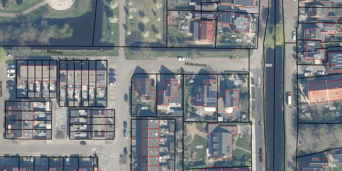 Gebruik de zoekbalk of klik op een perceel voor informatie over de adressen binnen dit perceel.