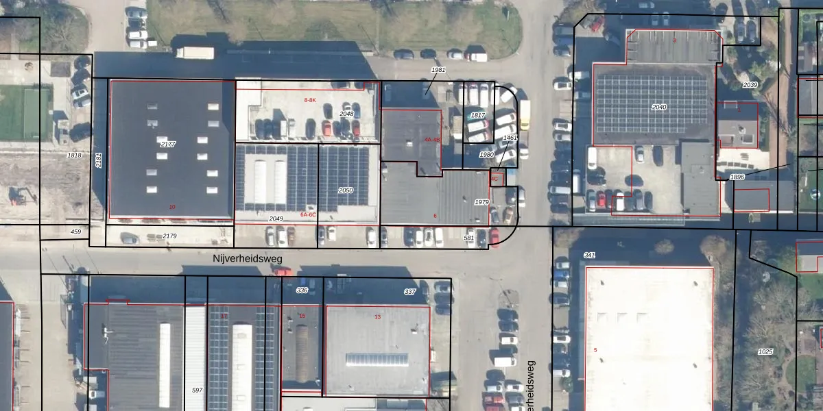 Het perceel waarop Nijverheidsweg 6 staat heeft een oppervlakte van 432 m². Dit is een groot perceel. De perceeloppervlakte wordt geregistreerd door het Kadaster. Gedetailleerde informatie over de maten van dit perceel kunt u vinden in het rapport Kadastrale kaart met maatvoering van Nijverheidsweg 6.