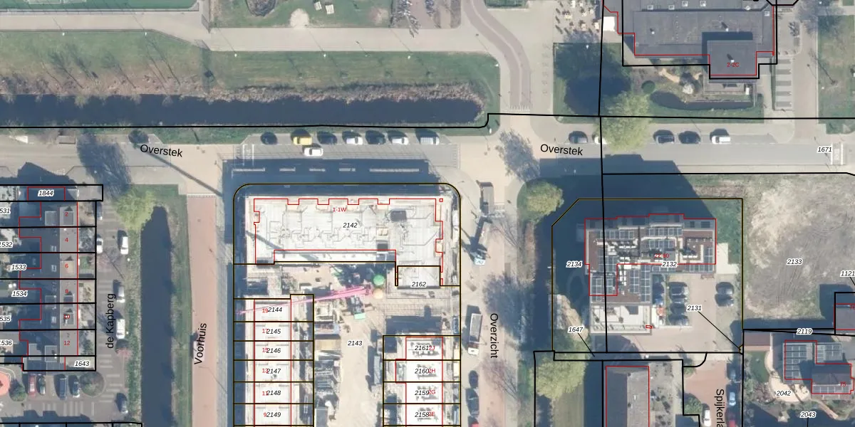 Het perceel waarop Overstek 1 staat heeft een oppervlakte van 1002 m². Dit is een zeer groot perceel. De perceeloppervlakte wordt geregistreerd door het Kadaster. Gedetailleerde informatie over de maten van dit perceel kunt u vinden in het rapport Kadastrale kaart met maatvoering van Overstek 1.