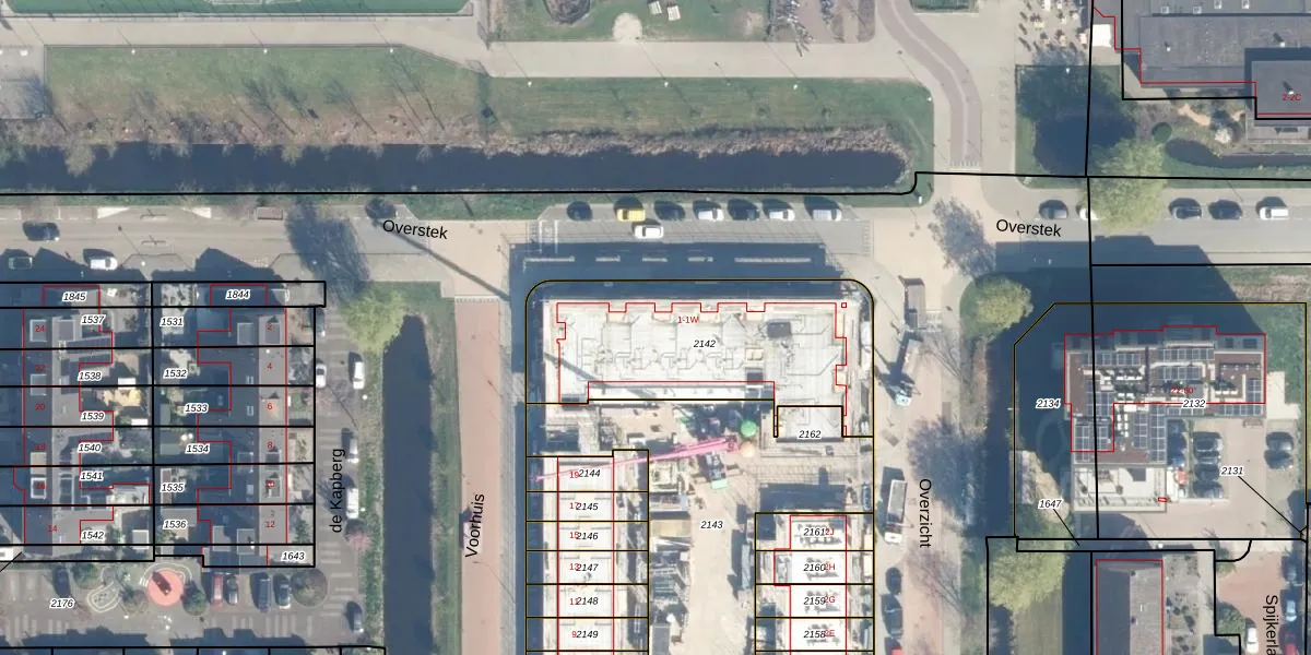 Overstek 1-P is gelegen op kadastraal perceel KMR00F2142. Deze kadastrale aanduiding is uniek en wordt gebruikt door het Kadaster om eigendomsrechten en andere zakelijke rechten vast te leggen. Het perceel maakt onderdeel uit van de kadastrale gemeente Kamerik.
