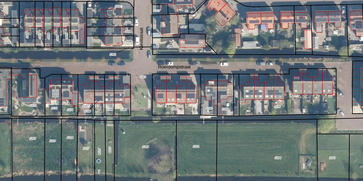 Het perceel waarop Roerdompstraat 14 staat heeft een oppervlakte van 615 m². Dit is een groot perceel. De perceeloppervlakte wordt geregistreerd door het Kadaster. Gedetailleerde informatie over de maten van dit perceel kunt u vinden in het rapport Kadastrale kaart met maatvoering van Roerdompstraat 14.