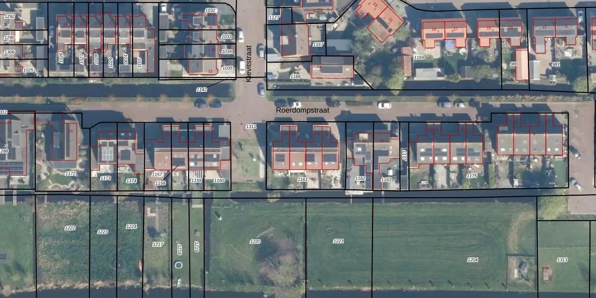Roerdompstraat 15 is gelegen op kadastraal perceel KMR00E1161. Deze kadastrale aanduiding is uniek en wordt gebruikt door het Kadaster om eigendomsrechten en andere zakelijke rechten vast te leggen. Het perceel maakt onderdeel uit van de kadastrale gemeente Kamerik.