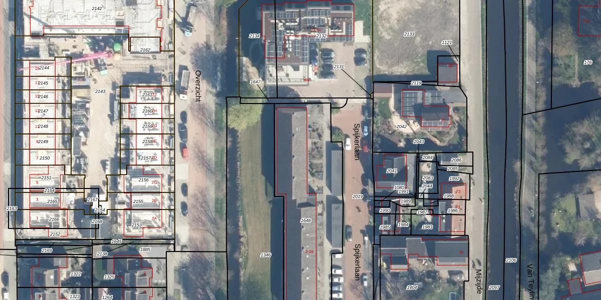 Het perceel waarop Spijkerlaan 10-I staat heeft een oppervlakte van 1394 m². Dit is een zeer groot perceel. De perceeloppervlakte wordt geregistreerd door het Kadaster. Gedetailleerde informatie over de maten van dit perceel kunt u vinden in het rapport Kadastrale kaart met maatvoering van Spijkerlaan 10-I.