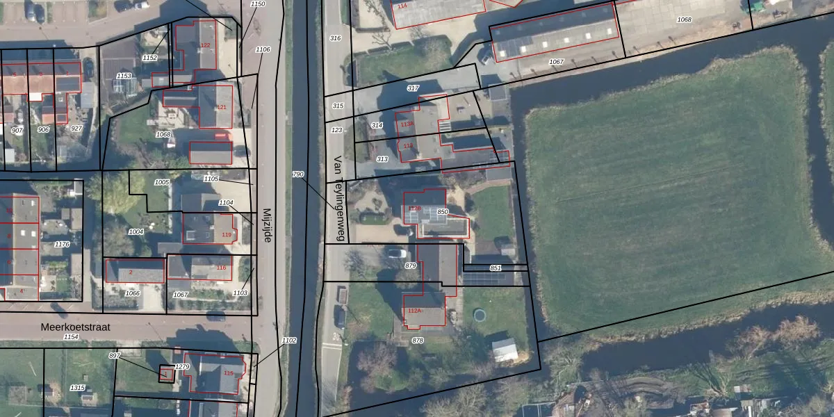 Van Teylingenweg 112-B is gelegen op kadastraal perceel KMR00L850. Deze kadastrale aanduiding is uniek en wordt gebruikt door het Kadaster om eigendomsrechten en andere zakelijke rechten vast te leggen. Het perceel maakt onderdeel uit van de kadastrale gemeente Kamerik.