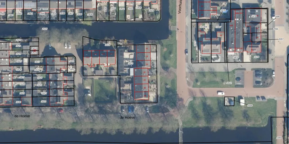 Het perceel waarop Voorhuis 32 staat heeft een oppervlakte van 1065 m². Dit is een zeer groot perceel. De perceeloppervlakte wordt geregistreerd door het Kadaster. Gedetailleerde informatie over de maten van dit perceel kunt u vinden in het rapport Kadastrale kaart met maatvoering van Voorhuis 32.