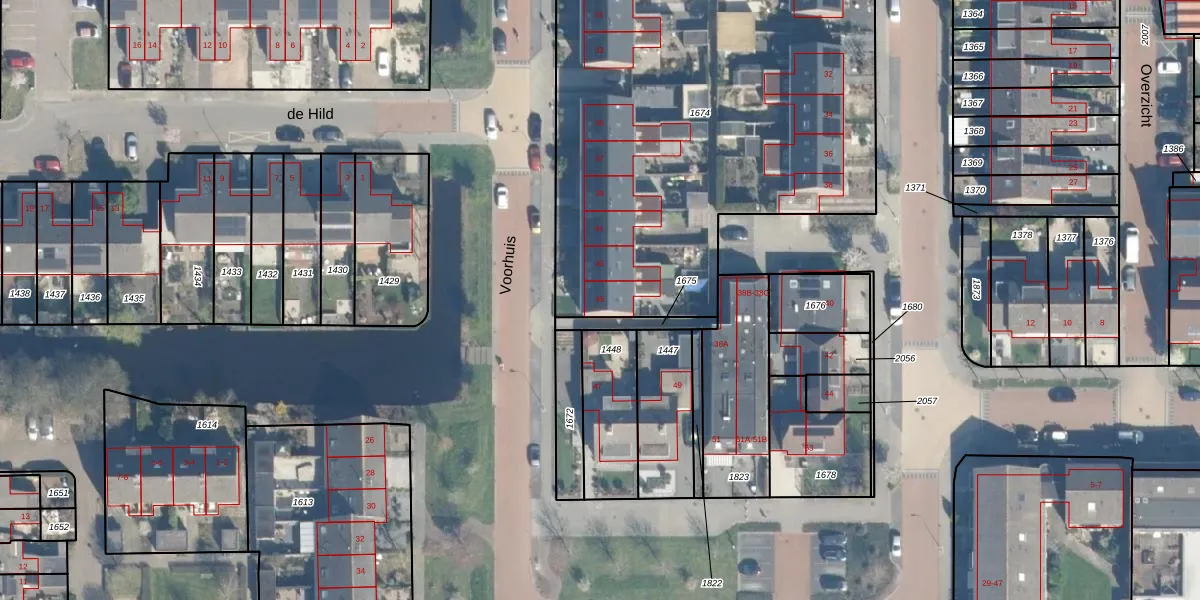 Het perceel waarop Voorhuis 45 staat heeft een oppervlakte van 3676 m². Dit is een zeer groot perceel. De perceeloppervlakte wordt geregistreerd door het Kadaster. Gedetailleerde informatie over de maten van dit perceel kunt u vinden in het rapport Kadastrale kaart met maatvoering van Voorhuis 45.
