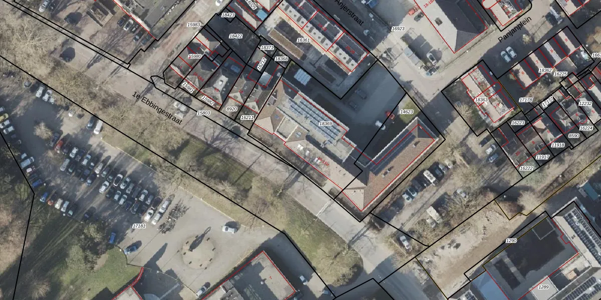 Het perceel waarop 1e Ebbingestraat 11-A staat heeft een oppervlakte van 1287 m². Dit is een zeer groot perceel. De perceeloppervlakte wordt geregistreerd door het Kadaster. Gedetailleerde informatie over de maten van dit perceel kunt u vinden in het rapport Kadastrale kaart met maatvoering van 1e Ebbingestraat 11-A.